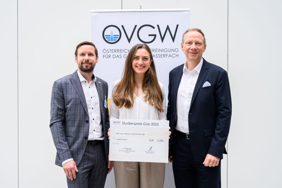 Im Vorjahr wurde im Rahmen des ÖVGW-Kongresses und der Fachmesse Gas Wasser 2025 erneut ein außerordentliches Nachwuchstalent ausgezeichnet. DI Theresa Schlömicher überzeugte die Jury mit ihrer Arbeit „Quantifizierung und Verortung geplanter Wasserstoffmengen in der Steiermark bis 2050 sowie Erstellung eines Transformationspfades für den Aufbau einer steirischen Wasserstoffinfrastruktur“.