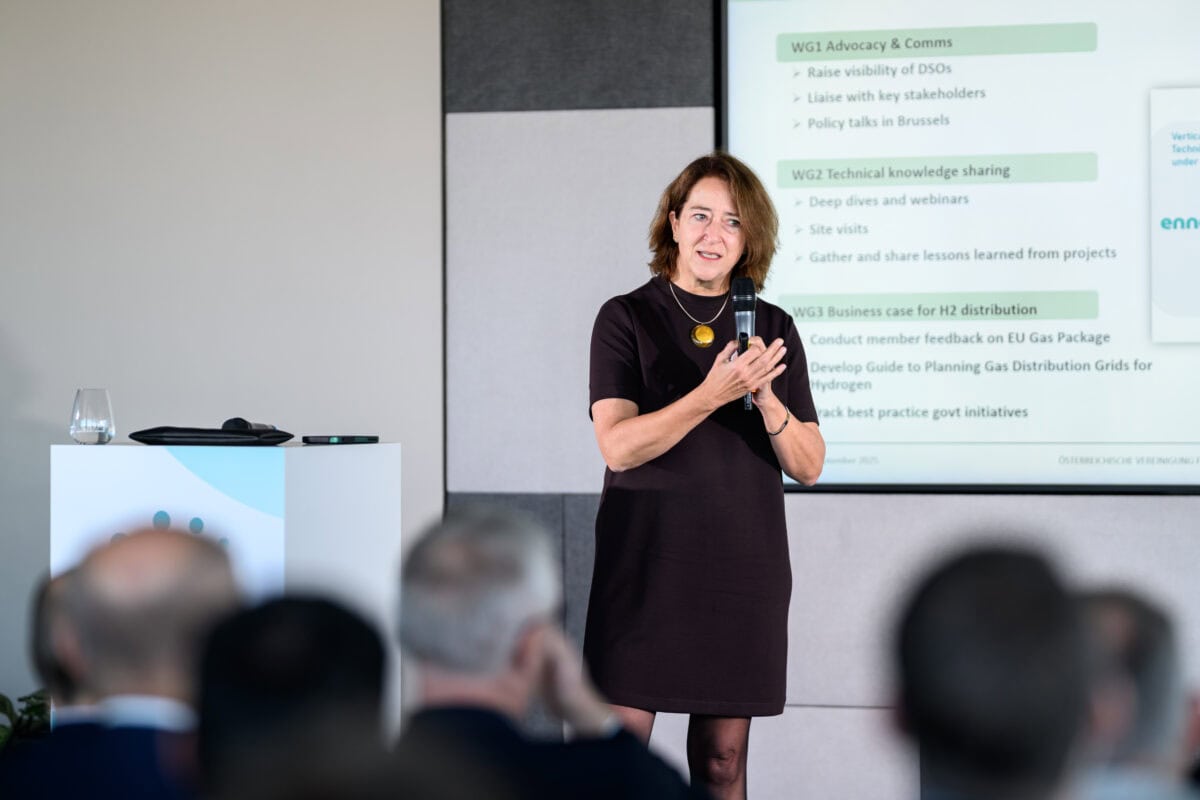 Brigitte Straka-Lang (TAG GmbH) stellte den SouthH2-Corridor vor, welcher in Zukunft Wasserstoff aus Nordafrika über Italien nach Österreich und Deutschland liefern soll. Sie kritisierte jedoch, dass dringend eine Regulierungsbehörde benannt werden müsse, die Fernleitungsnetzbetreiber für den Transport von Wasserstoff zertifiziert. Erfolgt diese Ernennung zu spät, könnten Fernleitungsrouten Österreich umgehen, was erhebliche wirtschaftliche Nachteile mit sich brächte.