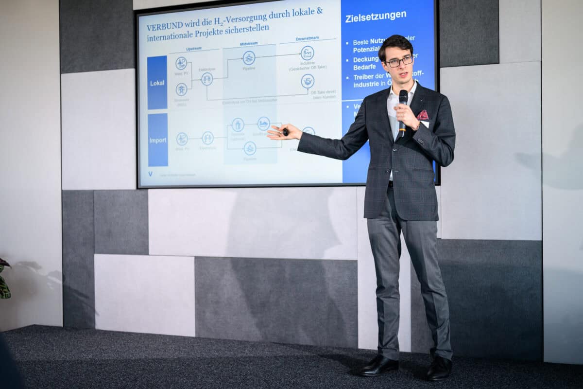 Bernhard Pribyl-Kranewitter (Verbund AG) gab Einblicke in die Erzeugungsprojekte für Grünen Wasserstoff, darunter das Großprojekt „H2 Notos“ in Nordafrika. Benedikt Hasibar (RAG Austria AG) berichtete ebenfalls über Produktionsanlagen und die Stromumwandlungsdienstleistungen der RAG. Dabei zahlen Kundinnen und Kunden einen jährlichen Fixbetrag dafür, dass überschüssiger Strom in Wasserstoff umgewandelt wird. Dieser wird anschließend ins Gasnetz beigemischt, gespeichert oder direkt an die Kundinnen und Kunden übergeben.